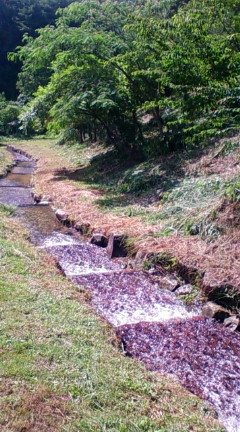 幅2m・深さ20cm程度の小さい小川です。 山からの湧き水ですので、水は冷たいですよ!